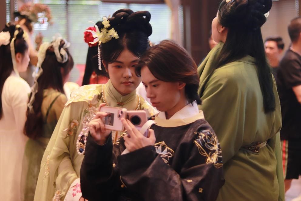 在两岸大学生新媒体创客营的旅程中,我们来了一场与时间对话的穿越之旅,感受到了中华文化的博大精深。有凝固了时间的石刻艺术,有跨越了历史长河的经典华服,而我和台湾大学生朋友们则用相机定格下了这些美好的瞬间,让文化的美历久弥新,留在了永远。走进大足石刻,我们被那些精美的佛像和石刻艺术深深震撼。每一尊佛像都栩栩如生,或慈悲、或庄严,或沉思、或微笑,诉说着这里千年的故事。台湾同学们惊叹于工匠们精湛的技艺,我们共同探讨着每一刀一刻背后的文化意义和历史价值。而在巴国城,我们仿佛穿越了时空的隧道,来到了古代的礼仪之邦。行走在亭台楼阁间,我们身着汉服,仿佛成了古代画卷中的人物,每一张照片都凝固了这份古典美。这次活动,让我深刻体会到中华文化的魅力和两岸同胞的血脉联系。我们虽然来自不同的地方,但共同的文化底蕴让我们有了更多的共同语言。在交流中,我们互相学习,共同成长,也收获了珍贵的友谊。