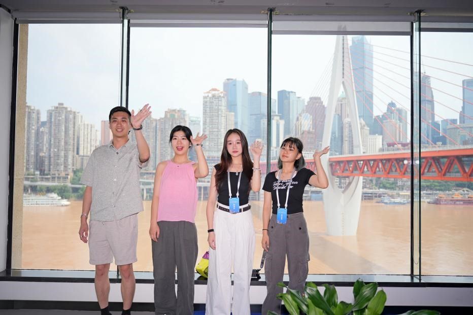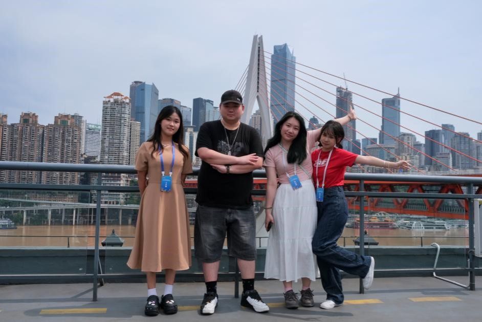 在两岸大学生新媒体创客营过程中,我们去往重庆建川博物馆、重庆抗战遗址博物馆、重庆市规划展览馆,回溯历史,展望未来,全方位感受重庆这座英雄城市的发展脉搏。我们漫步鹅岭贰厂,近距离体验重庆这座网红城市的绚烂魔幻,细嗅山城的青春气息。行越千里,“渝”你同行。在重庆,可以拥抱嘉陵江边习习的晚风,观赏南滨路的落日余晖,乘坐叱咤于大街小巷的黄色“法拉利”或是穿行于大江大桥山城楼宇的轨道交通,领略望而生畏的梯坎以及之上无比期待的风景。每一个重庆人、来过重庆的人、想要来重庆的人,都有自己的答案和想寻找的答案……组内的台湾同学小许和我说,初次来是为喜欢的偶像,这几天除了圆了自己的追星愿望,也切切实实感受到新时代“山水之城,美丽之地”新重庆的新发展新气象,满足了自己一直以来对中华传统文化的向往。两岸山河一脉,爱会穿越海峡。我和台湾小伙伴的交往日益密切,情谊也愈发浓厚,会在爬越梯坎时相互帮扶,会真心交流文化特色,会一起高呼“我爱重庆”表达爱意……重是重逢的重,庆是庆幸的庆。我们很庆幸作为中华儿女,相逢重庆,相约再见。