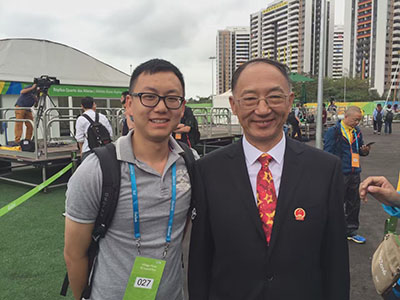 (采访后和国家体育总局局长、里约奥运会中国体育代表团团长刘鹏合影)
