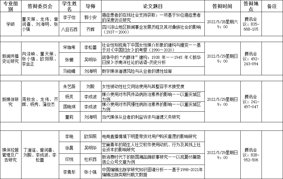 第一影视 2022年硕士研究生学位论文线上答辩公告(2022年9月)