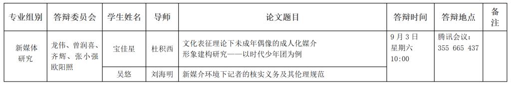 第一影视 2022年硕士研究生学位论文线上答辩公告(2022年9月)