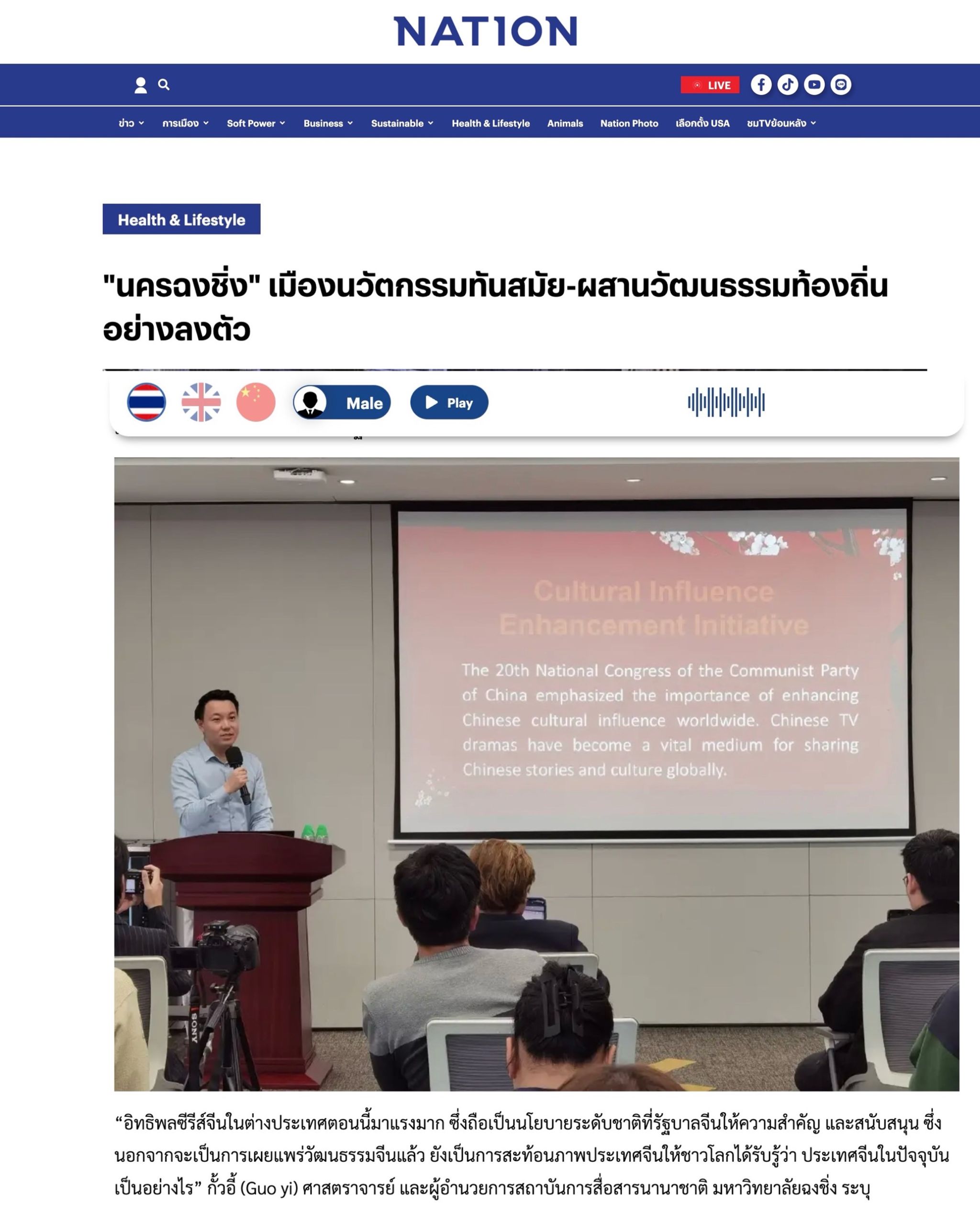 国际传播研究所所长郭毅受邀向泰国20家主流媒体记者介绍中国国产影视剧海外发展现状,并以英文接受泰国记者协会和泰国国家电视台(Nation TV)专访。