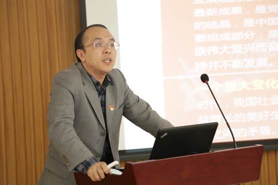 紧接着,李成波以《学习十九大报告》为主题,从“数”说十九大、理解“新时代”、报告解读、贯彻落实四个方面带领大家学习十九大报告,并就十九大报告的重要地位、新思想、如何贯彻落实十九大精神等内容进行了解读。