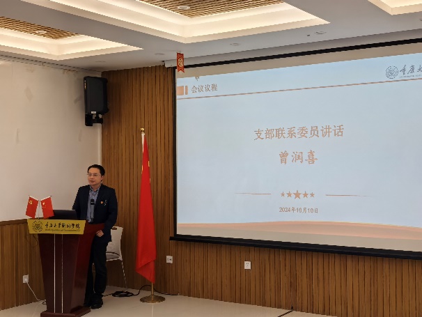 支部联系委员曾润喜副院长在会上发表了讲话。他对新一届党支部委员会的成立表示祝贺,希望他们能够在学院党组织的引领下,发挥团结协作、创新进取的精神,推动支部工作不断取得新的成绩。并对在座的党员同志提出了新的要求,希望大家能够不断成长,发挥党员的先锋模范作用。