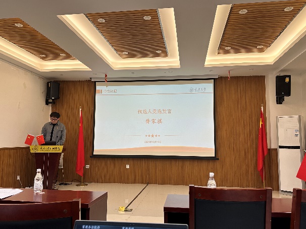 在发言分享环节,博士生党支部支委黎一达和周润哲同志分别进行了心得分享。他们结合个人经历和支部工作实际,畅谈了党支部建设的重要性和个人成长的体会,赢得了与会党员的热烈掌声。