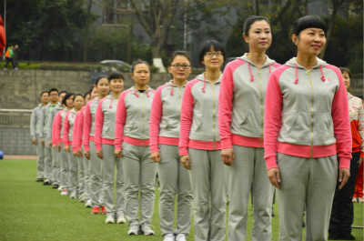 的老师们早早来到休息室,积极为体操汇演做练习。下午2:30分,趣味运动会在第九套人民广播体操中正式拉开序幕。 第一影视